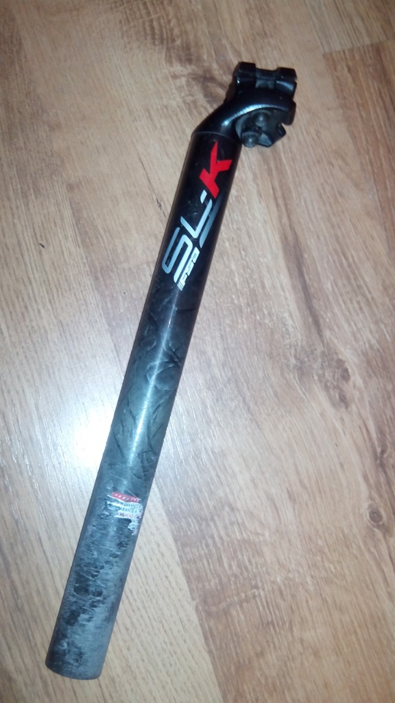 Карбоновий подсидел FSA SL-K оригинал, д 31.6, длинна 350мм, вес 238. Верхняя часть трубы в хорошем состоянии, нижняя (та что была внутри рамы) имеет потертости.
