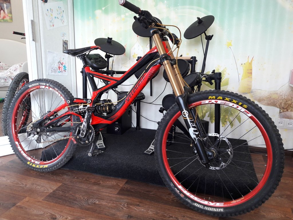 - Рама Specialized Demo 8.2 2012 - размер L-ка , есть царапины и несколько сколов краски.В основном обклеена местами антигравийной плёнкой,и коцки,в основной своей массе,именно на ней. Вмятин , трещин нет. Промы в порядке.