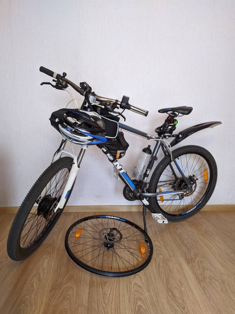 Продам Giant Revel с установленным комплектом от Велоракеты. Переднее мотор-колесо на 350 Вт, батарея 9.6 Ah 48V. В режиме ассиста на моих покатушках до 70 км, за год посадить его ни разу не удалось.