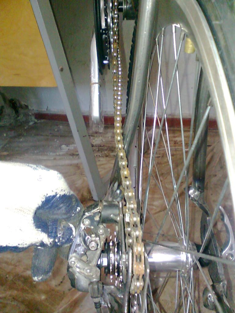 Ниже - фотки, как делать можно, но не нужно, ибо перекос цепи просто фантастический.