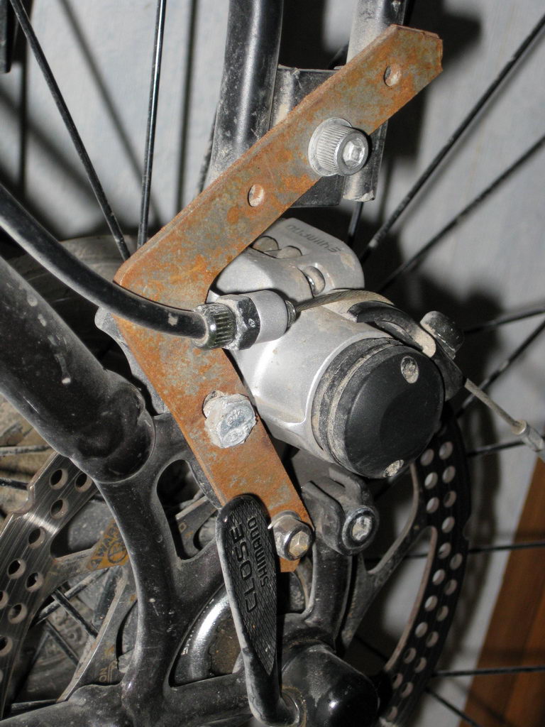 Якщо цікаво, я завтра напишу як я впорався з цією проблемою на свому Gary Fisher Wahoo disc зі стандартними Шимановськими механічними дисковими гальмами.