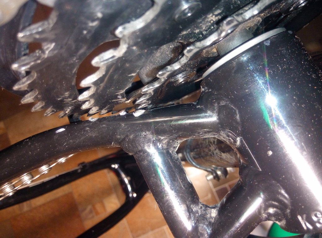 P.S. Передние звезды немного "гуляют" при вращении. (велосипед куплен в конце июня 2016) И осенью обнаружил небольшое повреждение пера внизу от передних звезд (конец октября).