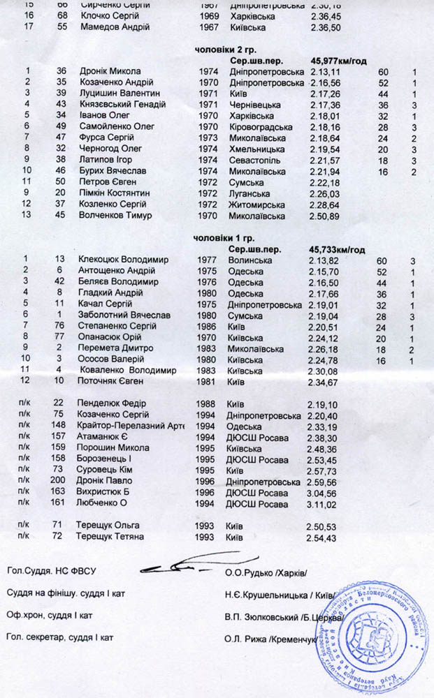 Прошу извинения за задержку. Вот официальные протоколы соревнований, без критериума - судьи его так и не создали...Сергей, а где результаты можно посмотреть?