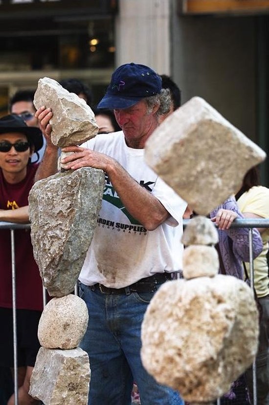 Натолкнулся на такой сад камней. Попробовал - реально качается, но стоит довольно уверенно. Штырей нет. Камни самые обычные, видно что притирали, но дырки просвечивает между ними иногда. Клей, бетон - нет ничего. Я шарился минут 10 пытаясь найти подвох, боясь пошевелить такую красоту.