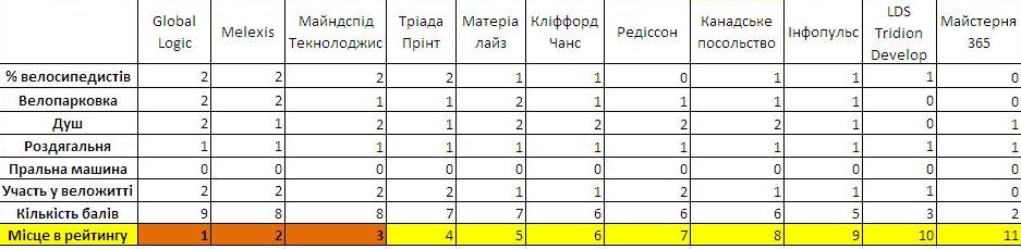 Критеріями вибору переможця будуть кількість велосипедистів та якість зручностей для них у компанії.