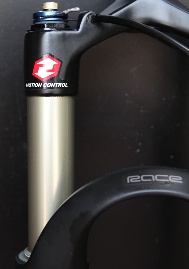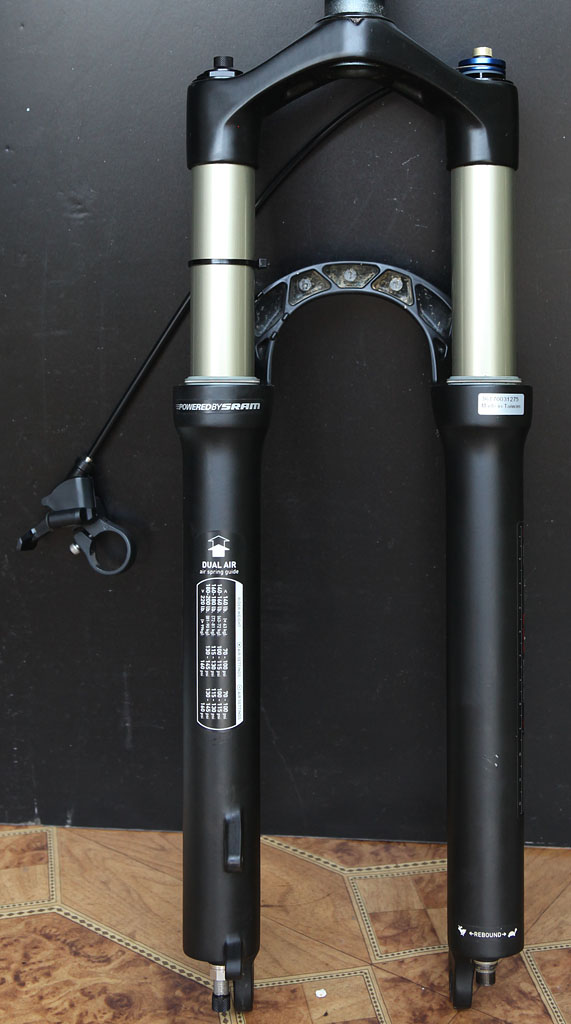 Вилка не новая, купил на онлайн аукционе еБей. Соответственно точный пробег неизвестен, но по описанию продавца "its in perfect working condition and has only a few rides on it". Перевод: в отличном состоянии и катана мало. По виду так и есть - анодированное покрытие в идеальном состоянии, на ногах пара мелких коцок, что соответствует описанию. При длительном катании были бы потертости, но их нет совершенно нигде.