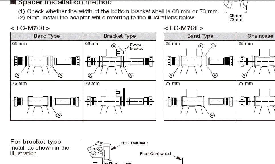Почему "2*2,5"? Шимановские каретки рассчитаны на установку с 3 спейсерами при кареточной трубе 68мм и с 1 - при трубе 73мм (если используется перекидка с креплением на каретку, то везде "минус одно" кольцо справа). Но при любой из этих комбинаций в итоге линия цепи у 660-х шатунов будет 50мм.