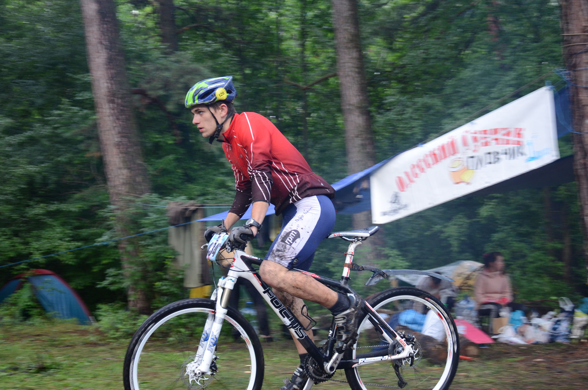 Ю: Про гонку можно сказать коротко: «триатлон… в особо извращенных формах». Или как Костя Марченко «это и есть настоящее кросс кантри». Трасса – хлам. Ни разу не слезая проехал лишь один круг. Остальные круги напоминали замешивание теста для стряпки. Повсюду скользкие тропинки, болото, в которое местами проваливаешься по пояс, лужи, глина, размякшие полевые тропы и ДОЖДЬ ДОЖДЬ ДОЖДЬ.