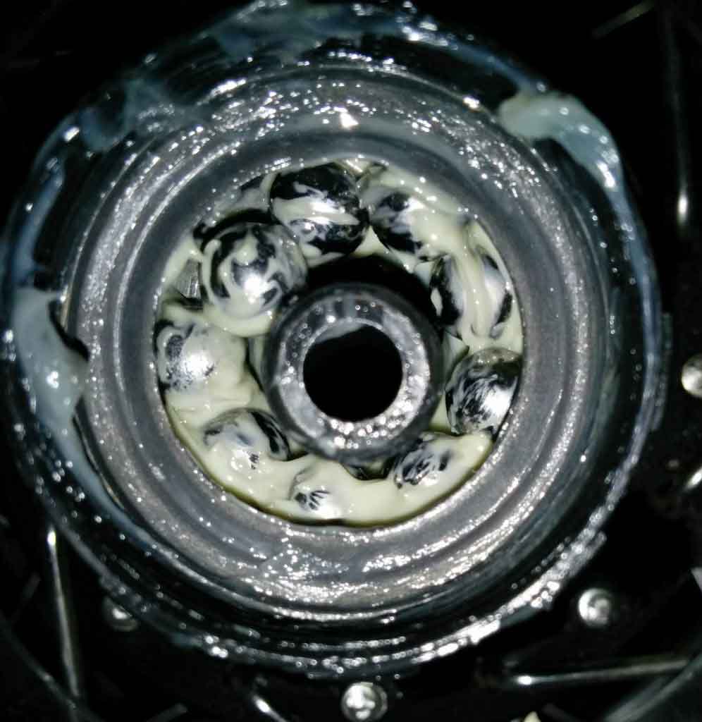 Не думаю что в этом причина, т.к. уж сильно перетянутой не могла быть (крутилось все очень накатисто и плавно) а вот слегка перетянутой она бы к такому не привела, мне кажется что причина в плохих конусах..и их шероховатости, вы мне скажите те шарики что рыжего цвета - это может быть нормой типа с завода..такое покрытие или структура, или это уже следствие износа-брака ..повреждения и тд..!?Втулка, похоже, была перетянута с рождения.