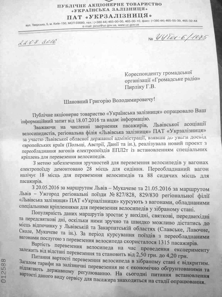 Приблизно так відповіли з Укрзалізниці на запит Громадьского радіо.