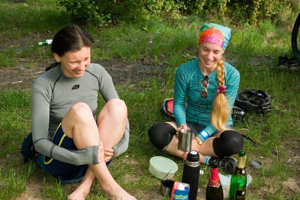 Погодка сегодня выдалась ммм...суперкатательная и суперкупательная. В несколько новом составе из 5-ти жаворонков под предводительством Максима бодренько проехались по тропе здоровья и через Пущу на цк_озеро. Водичка теплая-теплая, зеленая-зеленая :p Получила свои 50 км удовольствия с утра. :angel: