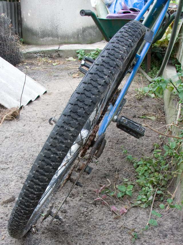Зашел я как-то за угол дома, а там... любимейший синий апхилл-байк моего братика. Сколько сотен километров Боярских лесов на нём не пройдено... А смотрите, как молодой! Даже восстанавливать его не хочется. Пусть остается таким, какой есть, в оригинальной комплектации, ведь в этом весь смысл винтажности.