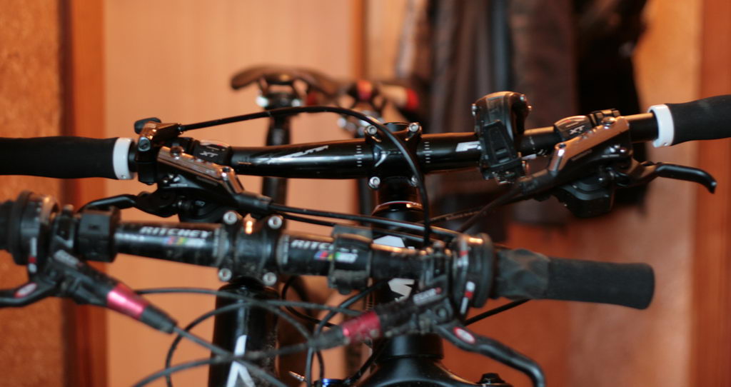 Сделал сравнительное фото и прозрел какая разница по высоте рулей (седла же на одном уровне), оба велика 19-й ростовки, с вилками 100мм хода и обуты примерно в одинаковую резину, на найнере стакан короче (120мм против 130 мм):