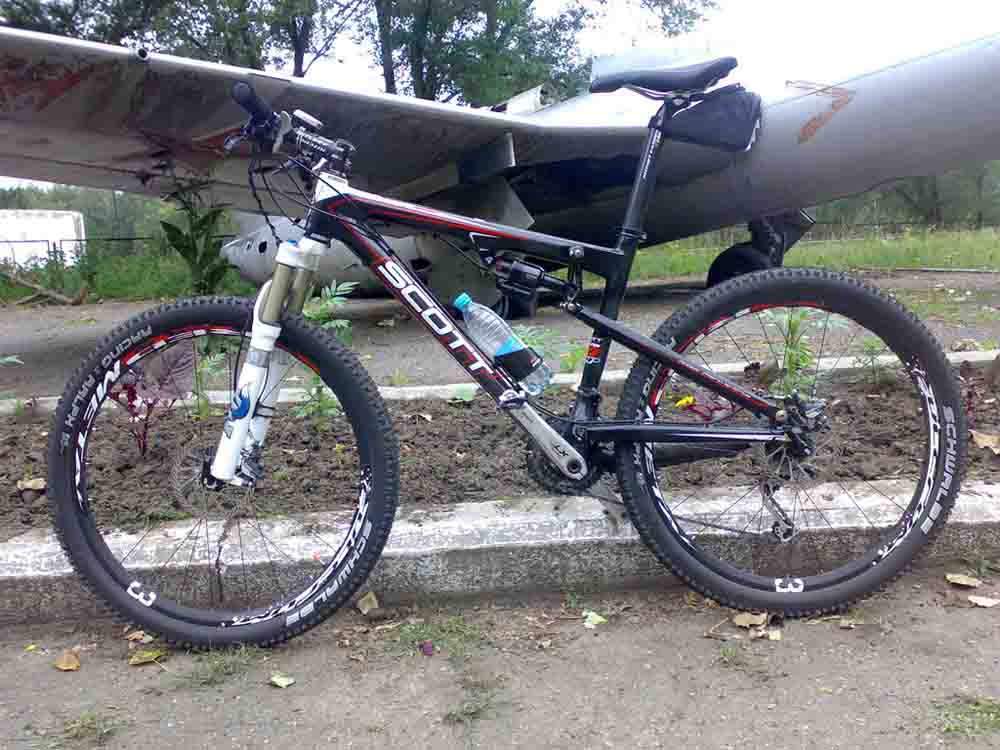 Розповідь продовжується, внаслідок сильного впливу на мозок високих технологій карбонобудування, яка підксилювалася гуркітом в одно вухо користі підвіса та в інше вухо навідомого почуття, що це дуже комфортно, було вирішено придбати раму скот спарк 30 2007 року, вага 1,850 кг, у травні 2012 року. Зрозуміло, що всі зап частини були взяті с хартейла скот скейл 15 2008 року, ще приводом придбання підвіса було дискомфорт в області хребта. Ітак вийшов такий агрегат, фото додається, вага була 10,4 кг на безкамерці. Це була ракета ще та, на грунтах можна було видавати на гора 35 км/год без болі, відверто кажучи дуже жалію, що продав цей агрегат. З абрейдів було тільки перехід на безкамерку та покри швабре рейсінг ральф та неопренові грипси.