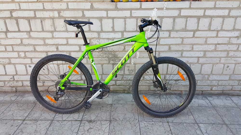 Продаю свой велосипед Scott Aspect 40, который был куплен мною в 2013 году в магазине. Катался только я, очень аккуратно. Велосипед без малейшего преувеличения как новый, катал не много. Нет ни одной царапины. О пробеге можно судить по состоянию родной резины, цепи, звезд и др. Размер – 19"(L), 173-187см. Велосипед в полностью стоковом состоянии, только на вере защита, установил в первый день. Модель отличная, но в данный момент я продаю свои оба велосипеда, чтобы купить один, классом намного выше.
