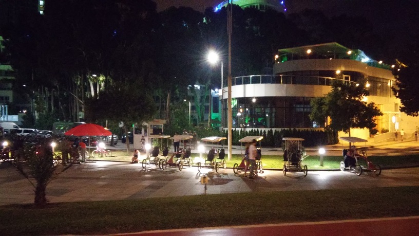 Парк находится прямо на побережье на горе, потому за подьемом идёт спуск и так по очереди. Не во все интересные места можно попасть с дорожки, потому в основном таскаю велосипед на себе либо толкаю в гору рядом со ступеньками: